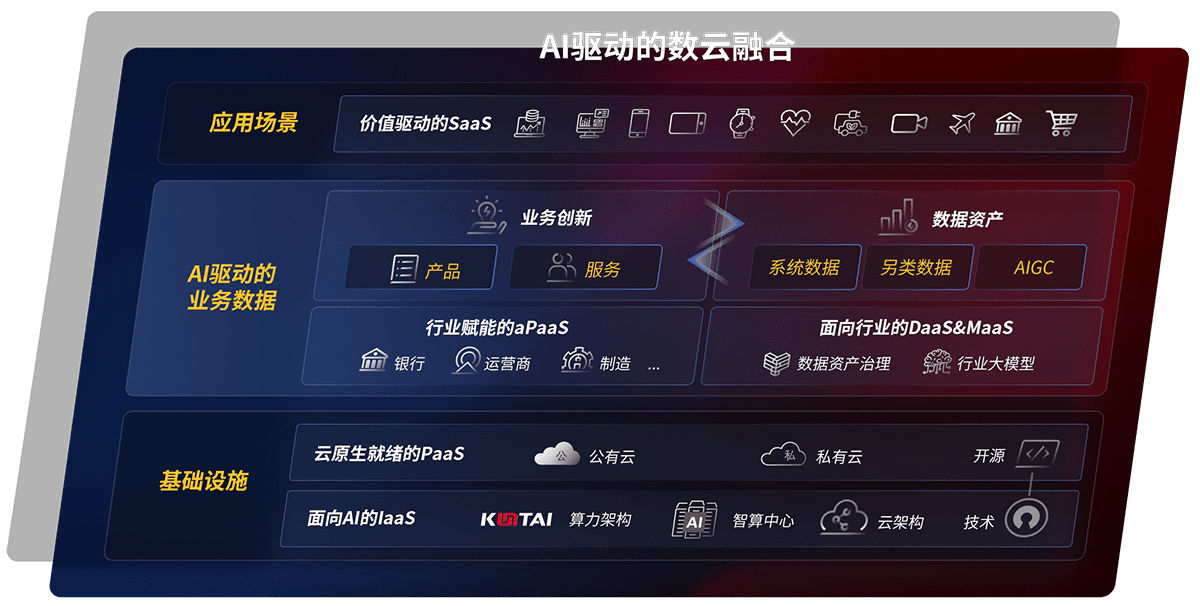 以梦之城鲲泰全国产化计算产品帮助金融行业客户构筑数字底座;以丰富的AI和数云产品及方案,,,,保障数据安全,,,挖掘数据价值,,,,提升服务品质
